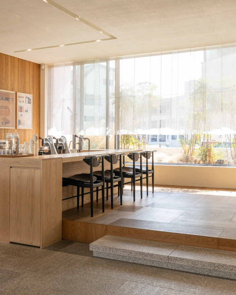 자연과 조화를 이루는 미니멀리즘 카페 공간카페